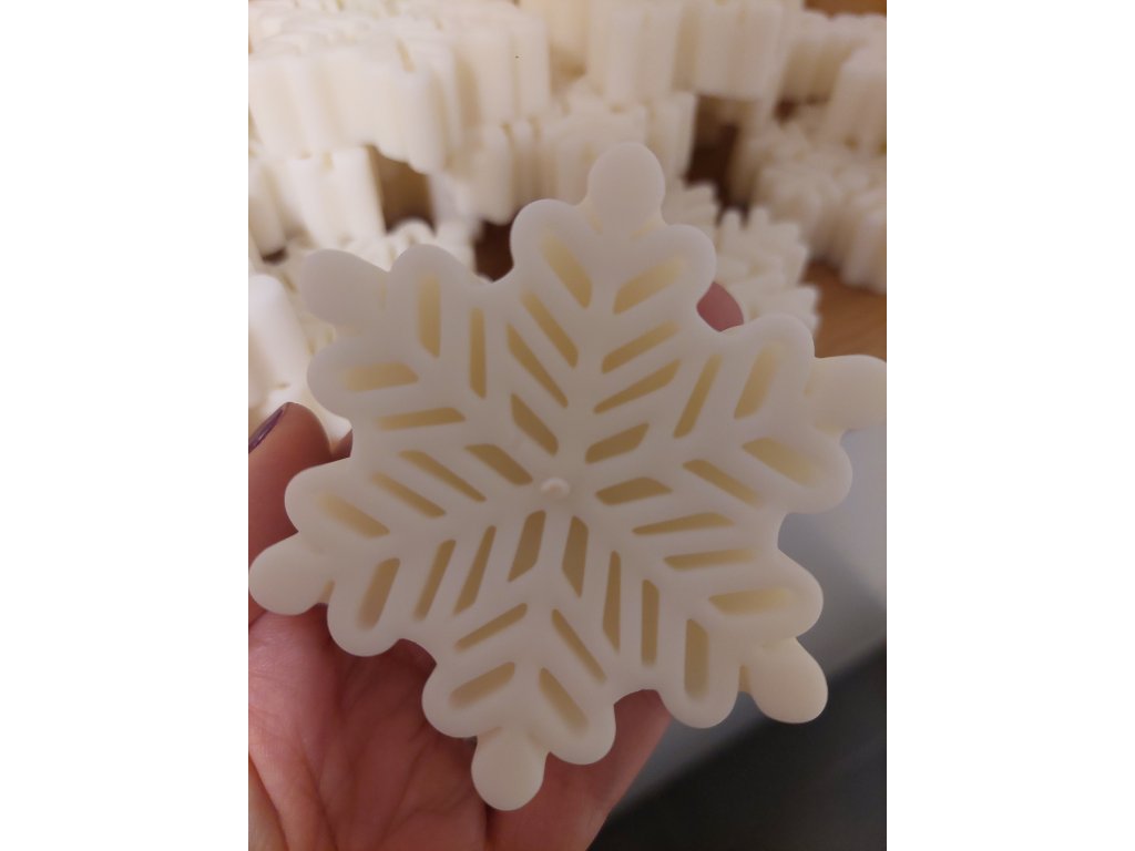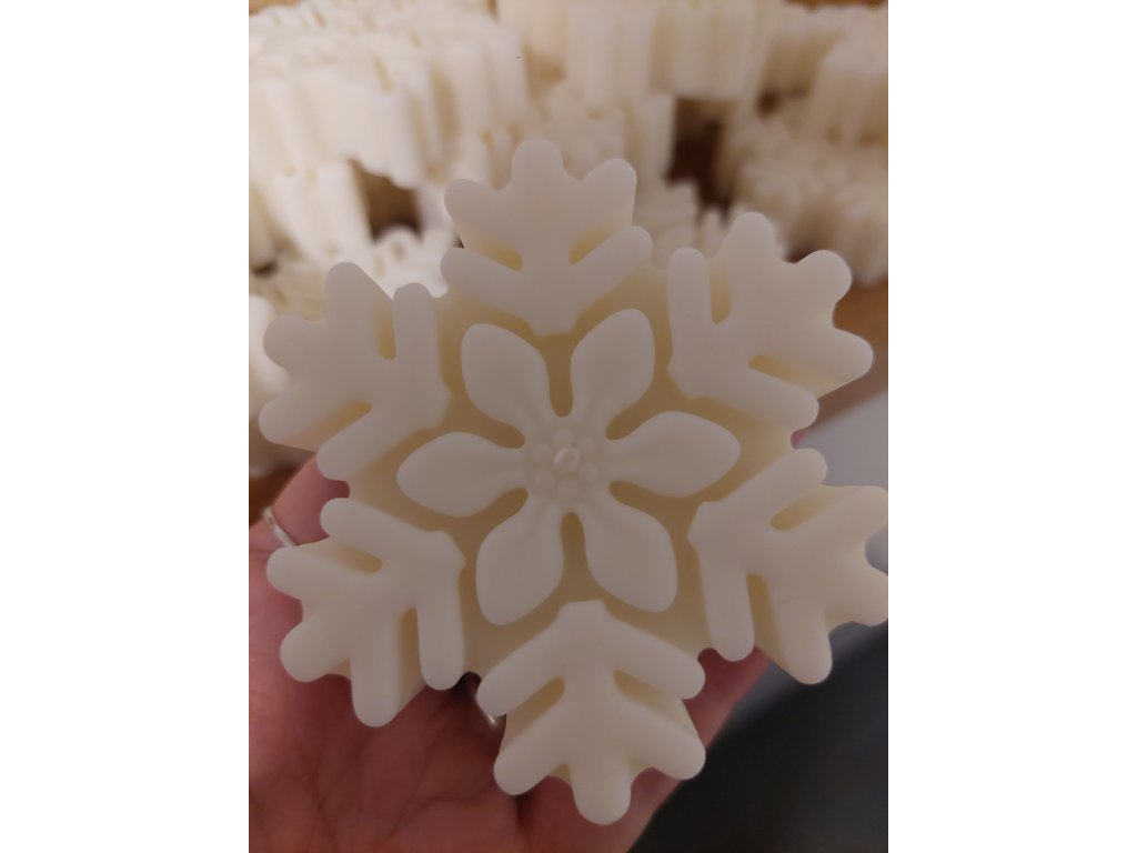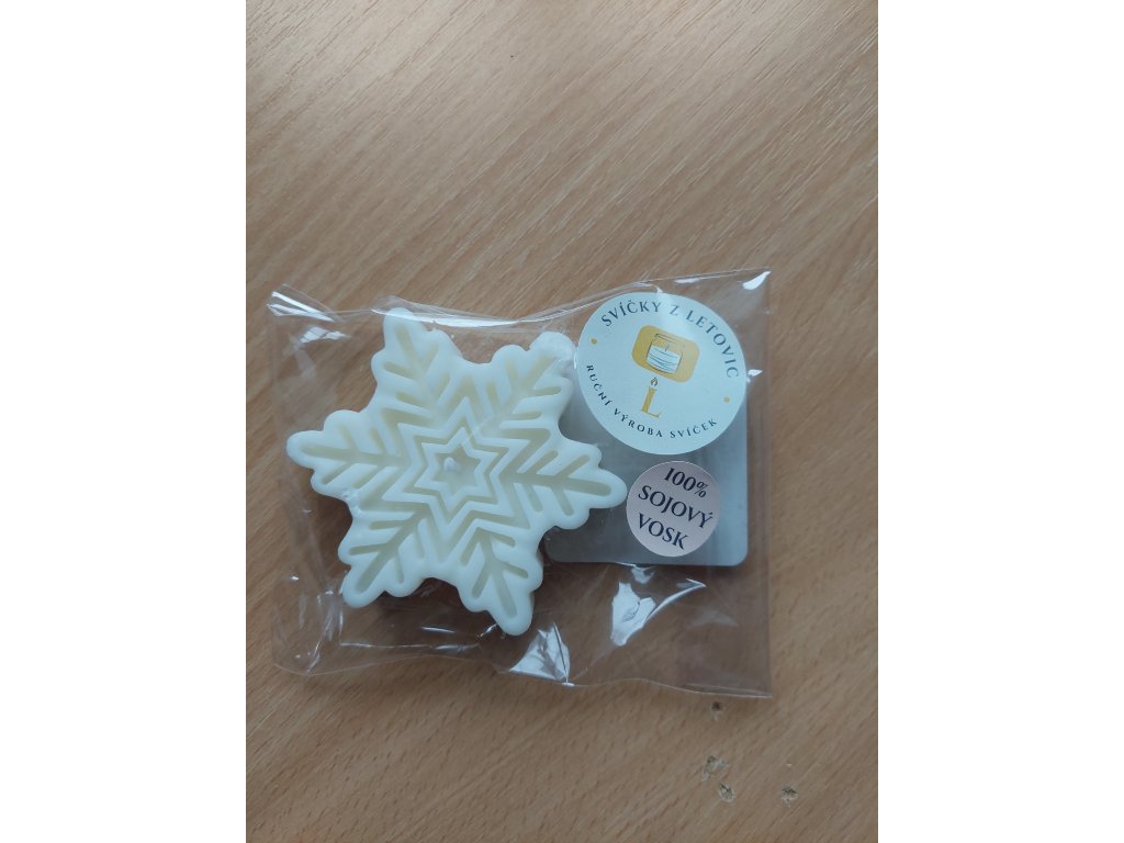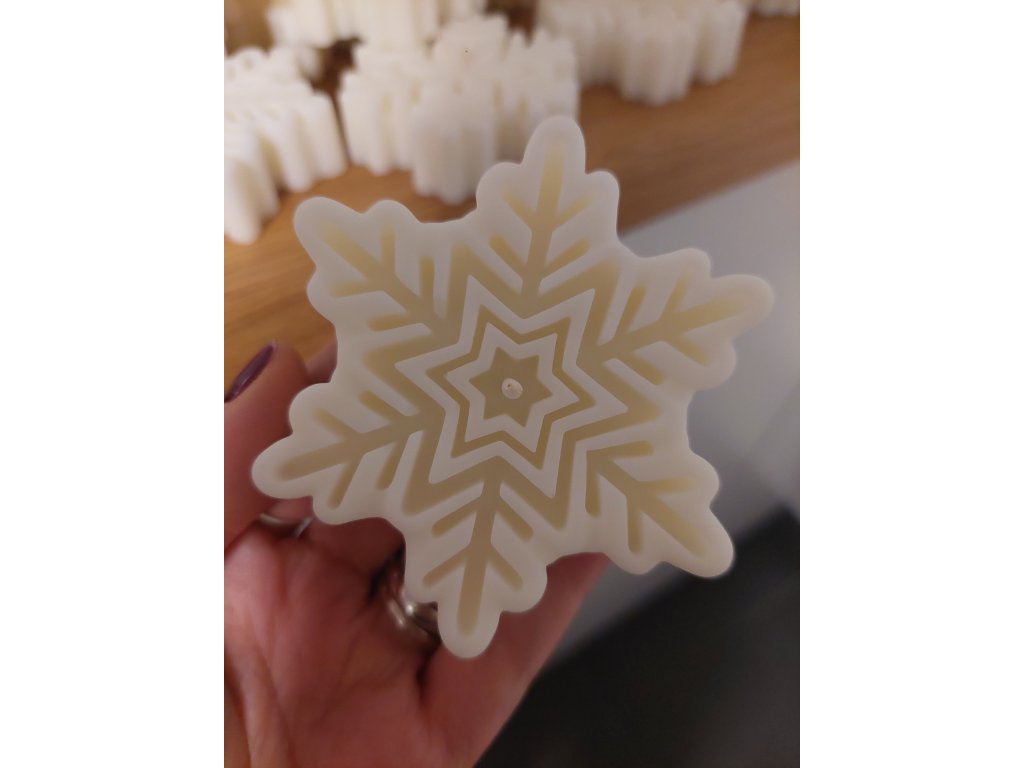 Volně stojící sojová svíčka ve tvaru sněhové vločky. 60g, 3 druhy.